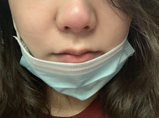 시술이 끝나고 붓기가 빠지고 없어서 온라인으로 영어 수업을 했지만 말하기 수업으로 마스크를 하고 수업을 들었습니다. 도저히 마스크를 벗고 험한 모습을 보여드릴 수가 없어서