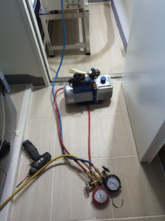 오늘후기에는이사를한집이었는데요~이사한집이라서에어컨이신규로설치되어있었어요.그래서 이 사진은 질소봉입이 되어있는 모습입니다!